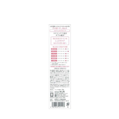 成分1:基剤 歯磨用リン酸水素カルシウム、無水ケイ酸溶剤 精製水湿潤剤 濃グリセリン薬用成分 薬用ハイドロキシアパタイト、ポリエチレングリコール400、β-グリチルレチン酸、塩化セチルピリジニウム発泡剤 ラウリル硫酸ナトリウム