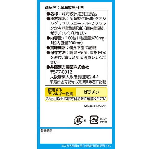 井藤漢方製薬 アイ鮫生肝油 180球