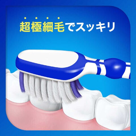 ハンドルがジョイント部分でしなるので、歯と歯ぐきのすき間まで届いてしっかり歯垢を除去しながら、ブラッシング圧を軽減します。