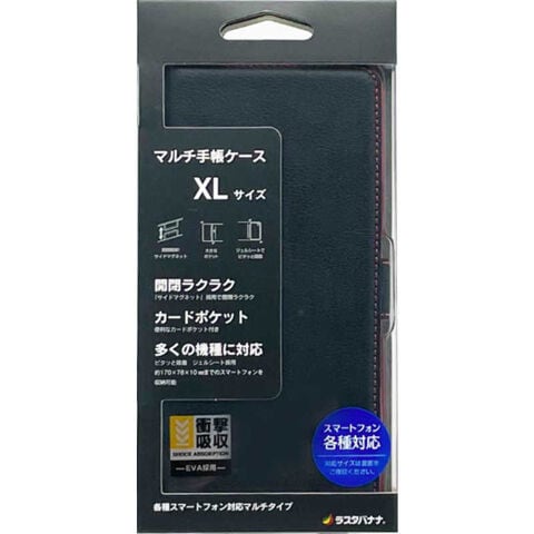 ラスタバナナ 汎用薄型サイドマグネットマルチ手帳型ケース XLサイズ ブラック×レッド RFRBOXL01BKY