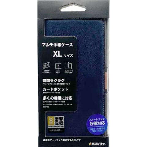 ラスタバナナ 汎用薄型サイドマグネットマルチ手帳型ケース XLサイズ ネイビー×ブラウン RFRBOXL01NAY
