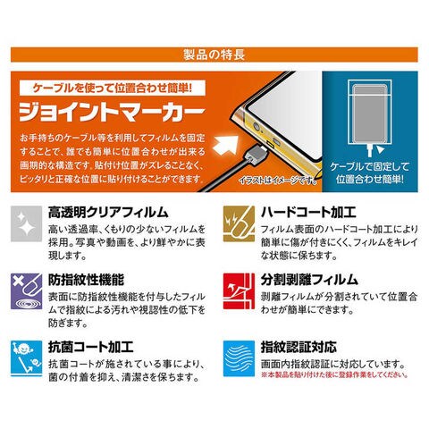 お手持ちのケーブルを利用してフィルムを固定することで、誰でも簡単に位置合わせが出来るジョイントマーカーを採用しています。貼り付け位置がズレることなく、ピッタリと正確な位置に貼り付けることができます。