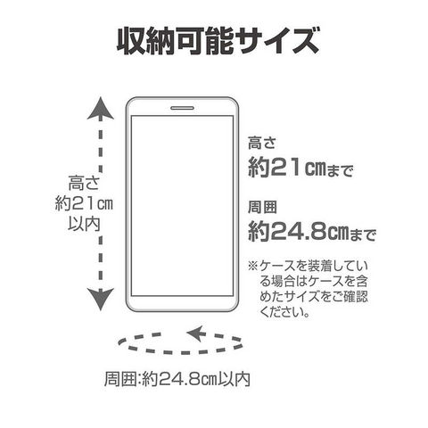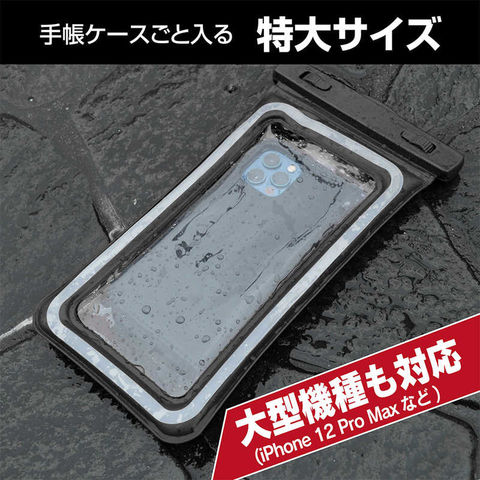 iPhone12ProMax(6.7インチ)が手帳ケースごと収納できる特大サイズです。