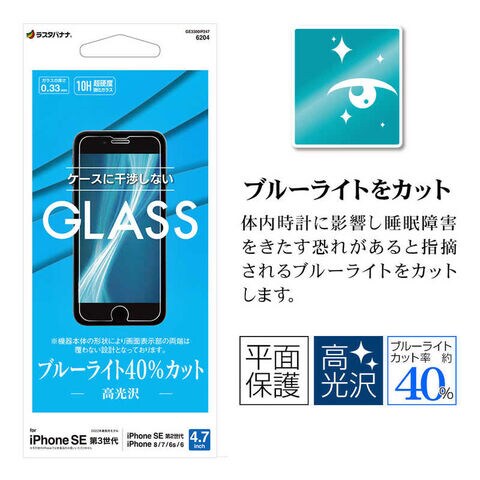 ラスタバナナ iPhone SE 第3世代/第2世代/8/7専用 ガラスフィルム ブルーライトカット 高光沢 高透明 防埃 0.33mm 硬度10H 保護フィルム クリア  GE3300IP247