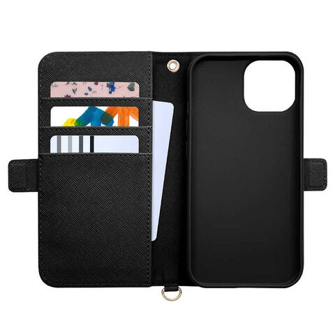 ラスタバナナ iPhone15 6.1インチ 手帳型ケース+ハンドストラップ カード3枚 BK