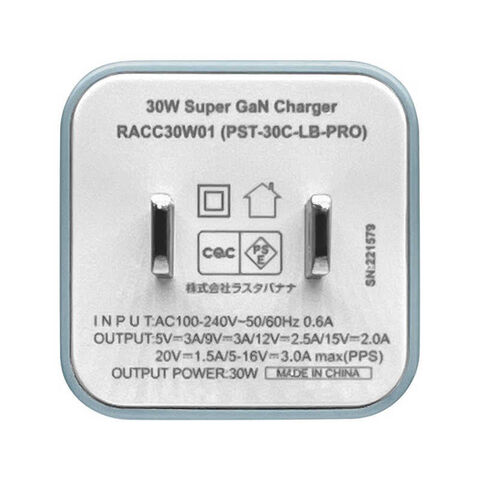 ラスタバナナ calon AC充電器 Type-Cポート PD30W[1ポート /USB Power Delivery対応 /GaN採用] スモーキーブルー RACC30W01SBL