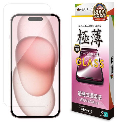 ラスタバナナ iPhone15 6.1インチ ガラスフィルム 高光沢 薄型 0.2mm 高感度