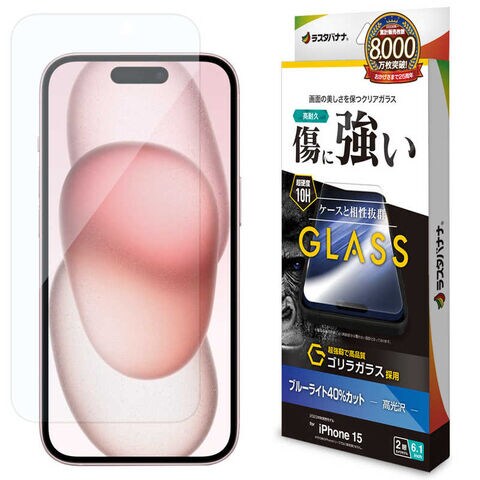 ラスタバナナ iPhone15 6.1インチ ガラスフィルム ゴリラガラス ブルーライトカット 高光沢