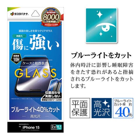 ラスタバナナ iPhone15 6.1インチ ガラスフィルム 簡単貼り付けガラス ブルーライトカット 高光沢