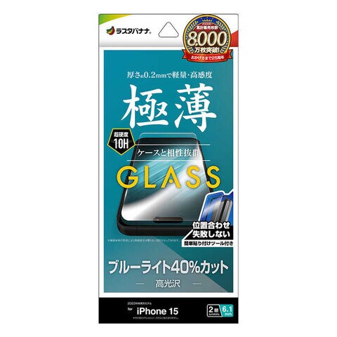 ラスタバナナ iPhone15 6.1インチ ガラスフィルム 簡単貼り付けガラス ブルーライトカット 高光沢 0.2mm 高感度
