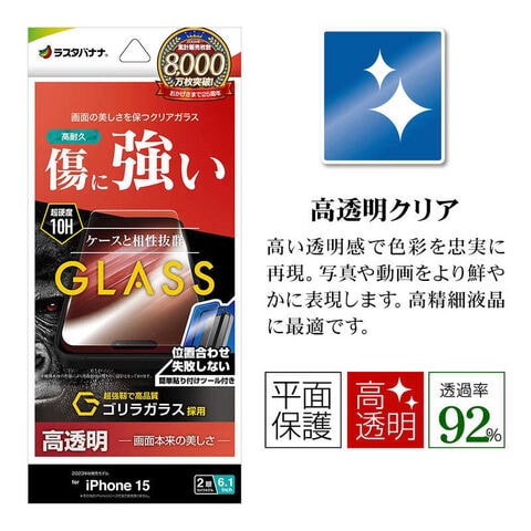 ラスタバナナ iPhone15 6.1インチ ガラスフィルム 簡単貼り付けゴリラガラス 高光沢