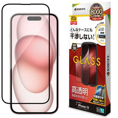 ラスタバナナ iPhone15 6.1インチ ガラスフィルム ケースに干渉しない 絶妙設計フレームガラス 高光沢 簡単貼り付け治具付き