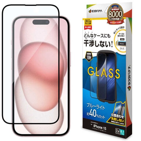 ラスタバナナ iPhone15 6.1インチ ガラスフィルム ケースに干渉しない 絶妙設計フレームガラス ブルーライトカット 高光沢 簡単貼り付け治具付き
