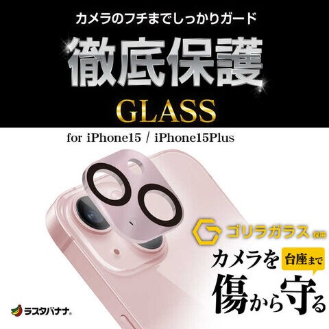 ラスタバナナ iPhone 15/15 Plus カメラレンズ保護ゴリラガラス アルミフレーム ピンク CR3953IP3617