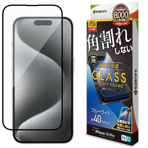 ラスタバナナ iPhone15 Pro 6.1インチ ガラスフィルム 全画面保護 角割れしない3Dソフトフレーム ブルーライトカット 高光沢 簡単貼り付け治具付き