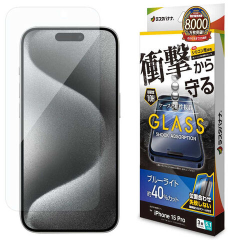 ラスタバナナ iPhone15 Pro 6.1インチ ガラスフィルム 衝撃吸収 ブルーライトカット 高光沢 簡単貼り付け治具付き