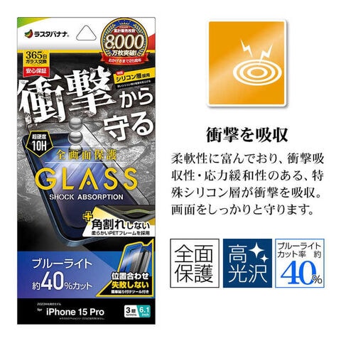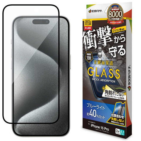 ラスタバナナ iPhone15 Pro 6.1インチ ガラスフィルム 全画面保護 衝撃吸収+角割れしない3Dソフトフレーム ブルーライトカット 高光沢 簡単貼り付け治具付き