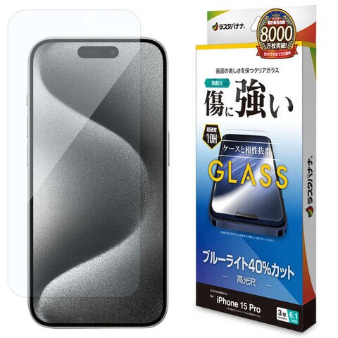 ラスタバナナ iPhone15 Pro 6.1インチ ガラスフィルム ブルーライトカット 高光沢