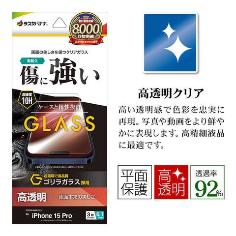 ラスタバナナ iPhone15 Pro 6.1インチ ガラスフィルム ゴリラガラス 高光沢