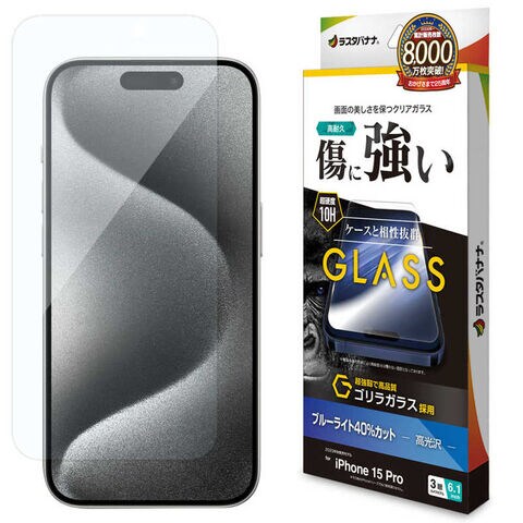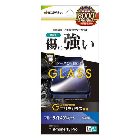 ラスタバナナ iPhone15 Pro 6.1インチ ガラスフィルム ゴリラガラス ブルーライトカット 高光沢