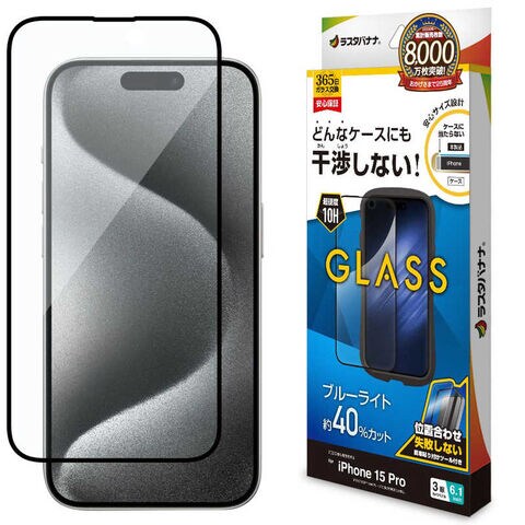 ラスタバナナ iPhone15 Pro 6.1インチ ガラスフィルム ケースに干渉しない 絶妙設計フレームガラス ブルーライトカット 高光沢 簡単貼り付け治具付き