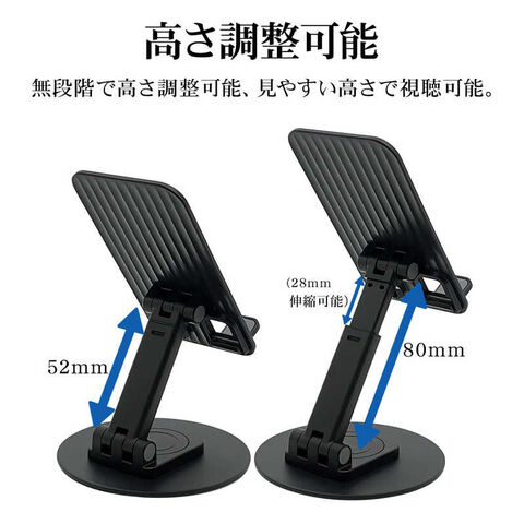 ラスタバナナ 360°回転 折りたたみ式 スマホ/タブレット用 卓上スタンドホルダーBK ブラック RSTAND04BK
