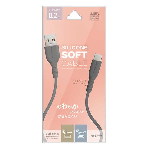 ラスタバナナ USB-A to Type-C 柔らかシリコンケーブル 0.2m CGRY [USB Power Delivery対応] チャコールグレー R02CAAC3A05CGRY