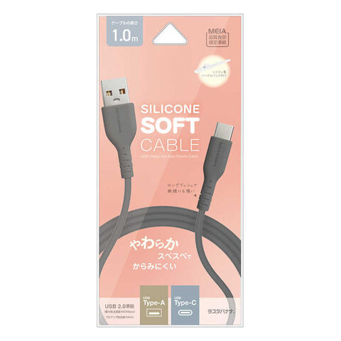 ラスタバナナ USB-A to Type-C 柔らかシリコンケーブル 1.0m CGRY [USB Power Delivery対応] チャコールグレー R10CAAC3A05CGRY