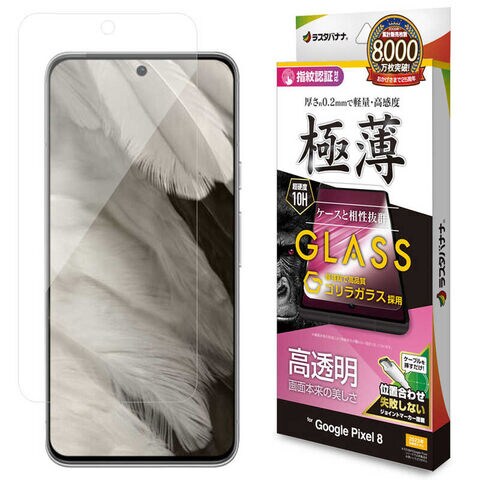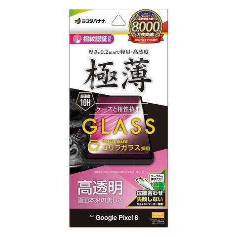 ラスタバナナ Google Pixel 8 ゴリラガラスフィルム 高光沢 薄型 0.2mm 高感度 指紋認証対応 位置合わせJM付き クリア GG4115P8