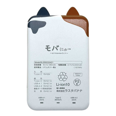 ラスタバナナ モバにゃー おでかけモバイルバッテリー 5000mAh A×2 C×1 2.1A出力 ミッケ [3ポート] RLI050C2A01MIK