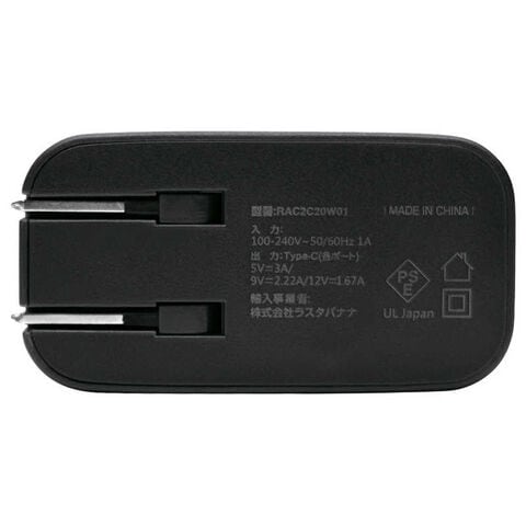 ラスタバナナ AC充電器Type-C×2 PD20W[2ポート/USB Power Delivery対応]チャコールグレー RAC2C20W01CGRY