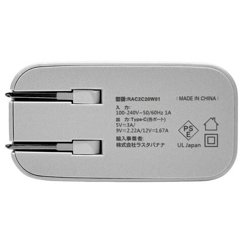 ラスタバナナ AC充電器Type-C×2 PD20W[2ポート/USB Power Delivery対応]ホワイト RAC2C20W01WH