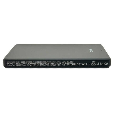 ラスタバナナ calon 5000mAh 薄型マグネット付ワイヤレスモバイルバッテリー WC15W C5V2A出力 [1ポート] トープ RLI050WCC15W01TA
