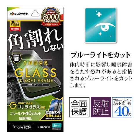ラスタバナナ iPhone 16(6.1インチ)inchiPhone 15 ガラスフィルム 全画面保護 角割れしない3Dソフトフレーム ゴリラガラス 簡単貼り付け治具付き SGY4300IP461