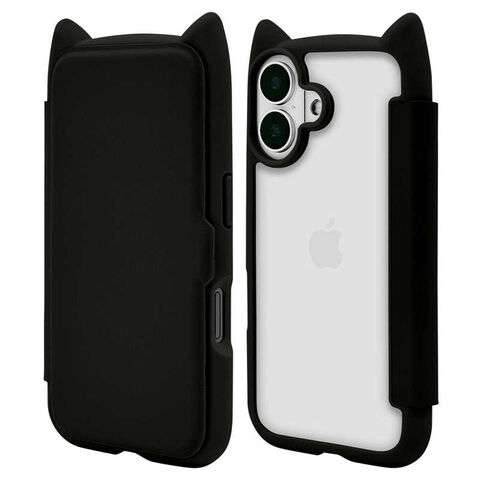 ラスタバナナ iPhone 16(6.1インチ)mimi 猫耳手帳型ハイブリッドケース TPU×PC MIL規格準拠 ブラック 8101IP461BHPBK