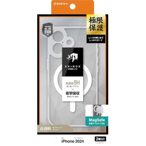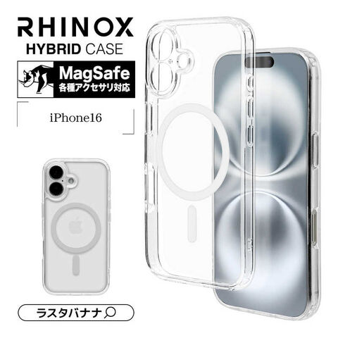 ラスタバナナ iPhone 16(6.1インチ)RHINOX 極限保護 ハイブリッドケース TPU×アクリル 5H 衝撃吸収 MIL規格準拠 Magsafe対応 クリア 8123IP461HAMLCL