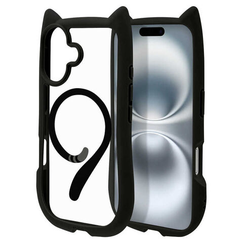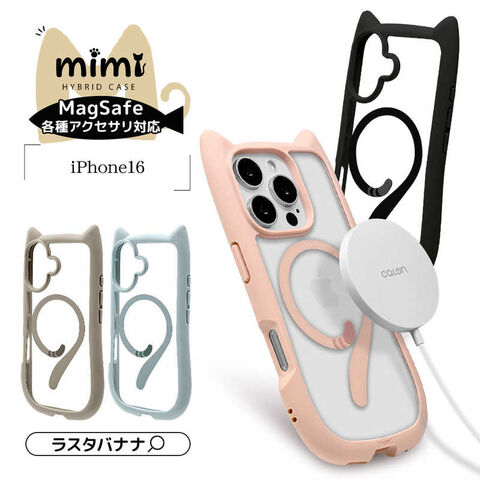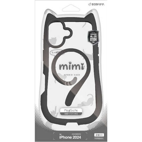 ラスタバナナ iPhone 16(6.1インチ)mimi 猫耳ハイブリッドケース TPU×PC Magsafe対応 MIL規格準拠 ブラック 8147IP461HPMBK