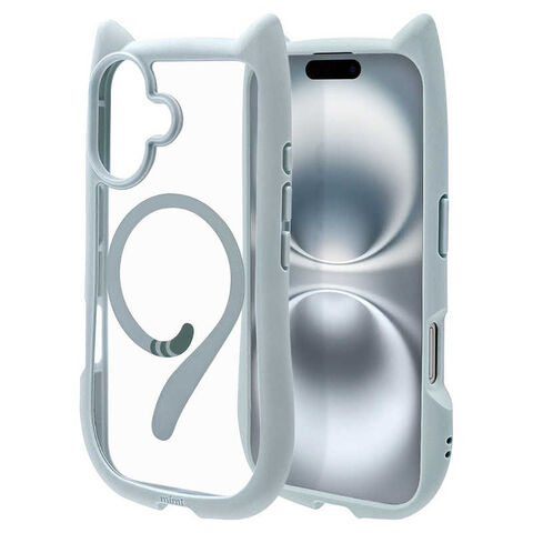ラスタバナナ iPhone 16(6.1インチ)mimi 猫耳ハイブリッドケース TPU×PC Magsafe対応 MIL規格準拠 スモーキーブルー 8150IP461HPMSBL