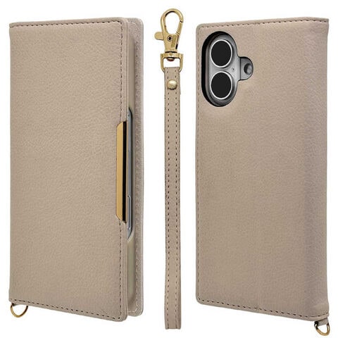 ラスタバナナ iPhone 16(6.1インチ)iLBE 手帳ケース+ハンドストラップ カードポケット エトープ 8182IP461BHSEP
