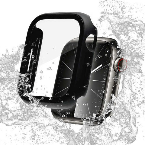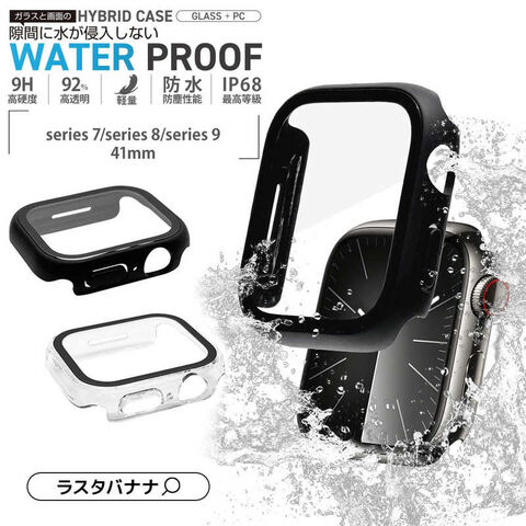 ラスタバナナ Apple Watch Series 8/7 41mm用 ガラス+PC一体型 防水ケース IPX68 ブラック GHB4624AW41