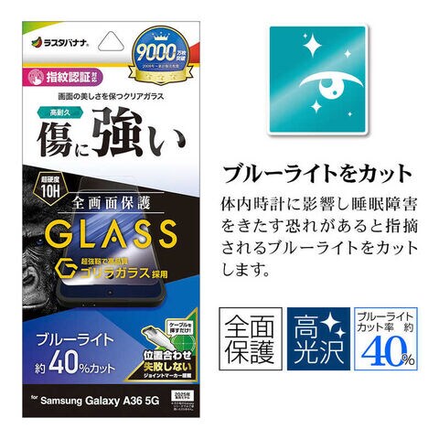 ラスタバナナ Galaxy A36 5G ゴリラガラスフィルム ブルーライトカット 高光沢 0.33mm 位置合わせJM付き GGE4647GA36