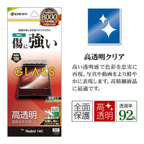 ラスタバナナ Redmi 14C ガラスフィルム 高光沢 0.33mm 位置合わせJM付き クリア GP4677R14C