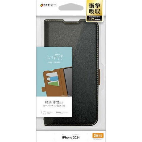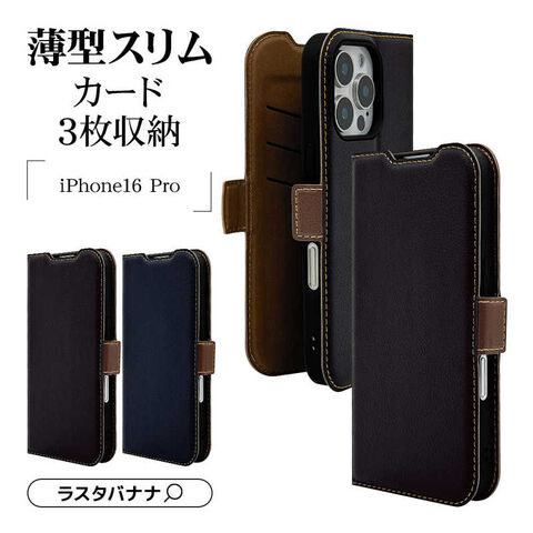 ラスタバナナ iPhone 16 Pro(6.3インチ) 薄型手帳サイドマグネットケース 衝撃吸収 ブラックブラウン 8368IP461PBSMBKB