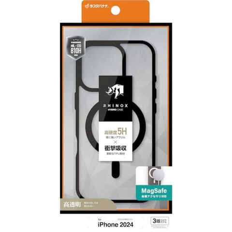 ラスタバナナ iPhone 16 Pro(6.3インチ) RHINOX ハイブリッドケース TPU×アクリル 5H 衝撃吸収 MIL規格準拠 Magsafe対応 ブラッククリア 8376IP461PHAMBK