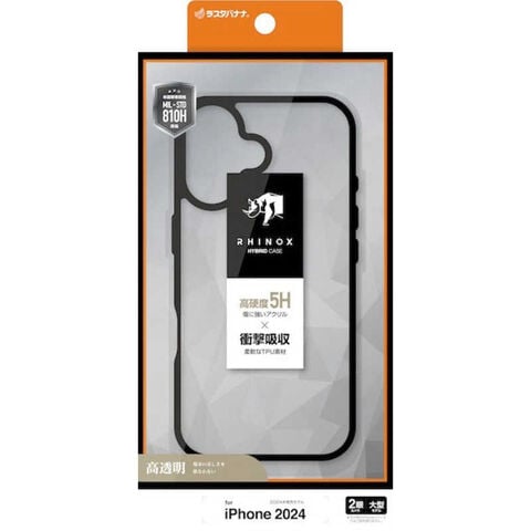 ラスタバナナ iPhone 16 Plus(6.7インチ) RHINOX ハイブリッドケース TPU×アクリル 5H 衝撃吸収 MIL規格準拠 ブラッククリア 8379IP467HABK