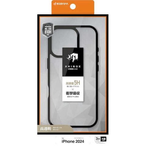 ラスタバナナ iPhone 16 Pro Max(6.9インチ) RHINOX ハイブリッドケース TPU×アクリル 5H 衝撃吸収 MIL規格準拠 ブラッククリア 8383IP467PHABK