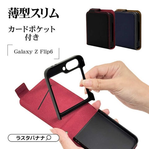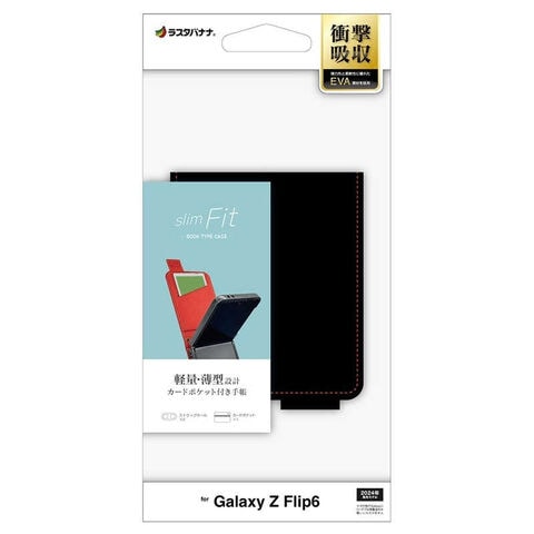ラスタバナナ Galaxy Z Flip 6 薄型手帳サイドマグネットケース 衝撃吸収 ブラック×レッド 8438GZFL6BSMBKR