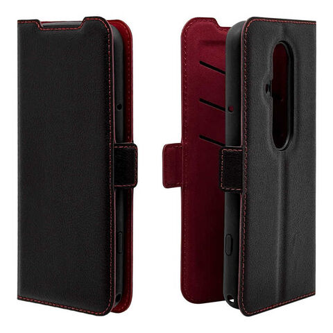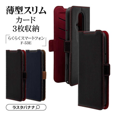 ラスタバナナ らくらくスマートフォン F-53E 薄型手帳サイドマグネットケース 衝撃吸収 ブラック×レッド BK×RD 8459F53EBSMBKR