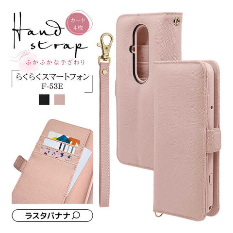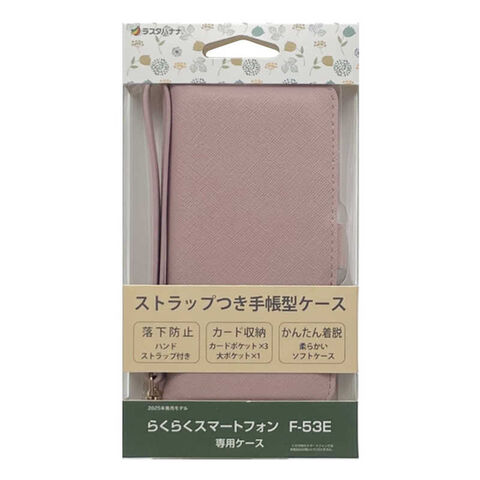 ラスタバナナ らくらくスマートフォン F-53E ハンドストラップ付き手帳型ケース ライトピンク 8462F53EBHSLPK