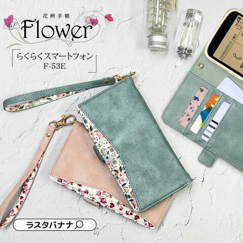ラスタバナナ らくらくスマートフォン F-53E 花柄手帳型ケース ライトブルー 8466F53EBHLBL